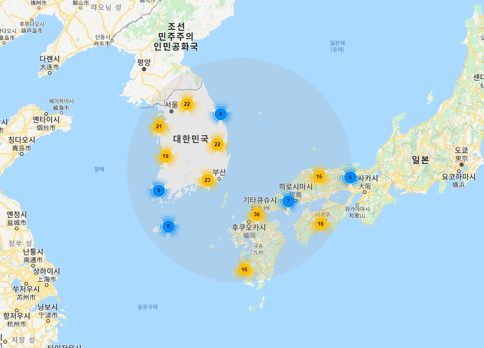 오늘은 이 지도위에 마커를 표현할 때, 효율적으로 표현할 수 있는 방법에 대해서 다룰까 합니다.