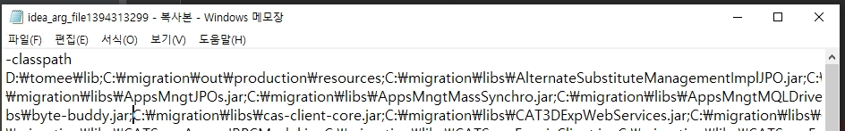 문제의 원인파악은 IntelliJ 실행시, 생성되는 argument 파일에서