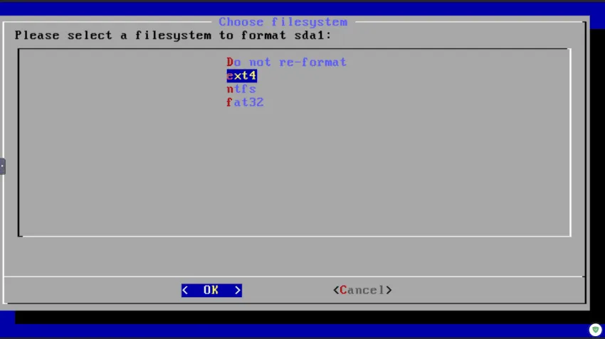 파일포맷은 "ext4"를 선택합니다.
