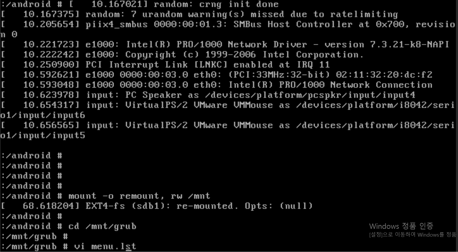 몇 차례 진행이 완료된 이후에 enter를 입력해 command을 입력할 수 있는 쉘이 나타나도록 만듭니다.