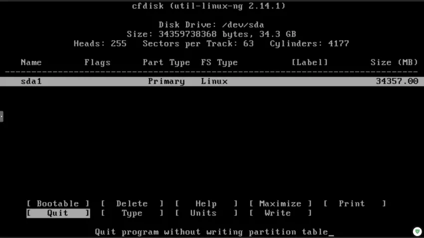 새로운 파티션이 만들어졌으므로 "Quit"를 눌러 뒤로 이동합니다.