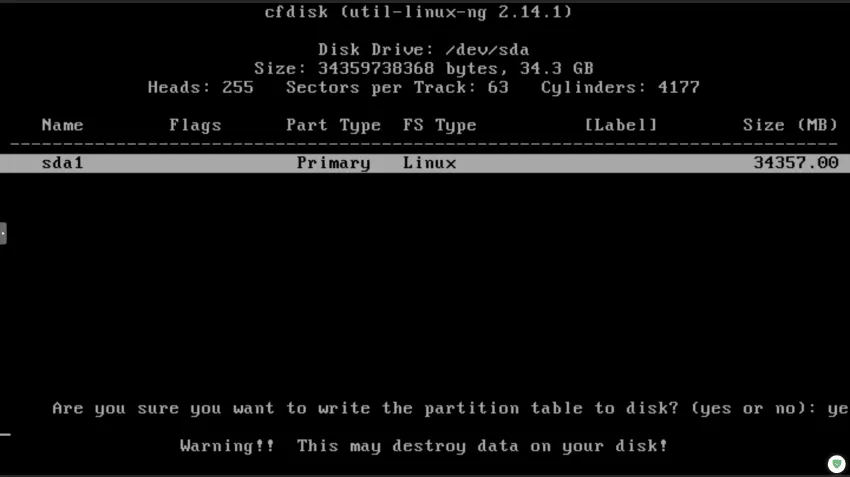 "yes"를 입력해 포맷에 동의하고 계속진행합니다.