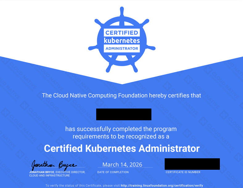 꽤 오랜시간(약 2년) 동안 공부하던 Kubernetes에 대한 결실을 CKA로 맺었네요 :)