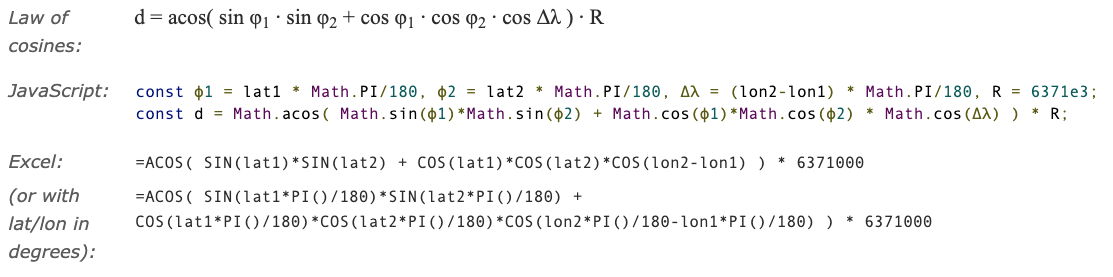 Harversine 공식을 사용하면, 지구상에 두 지점 사이의 거리를 구할 수 있습니다.