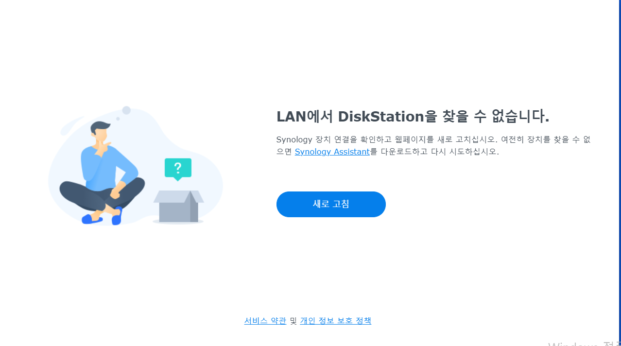http://find.synology.com/# 여기로 접속하여 NAS와 같은 네트워크를 공유하는 컴퓨터에서 NAS를 검색합니다.