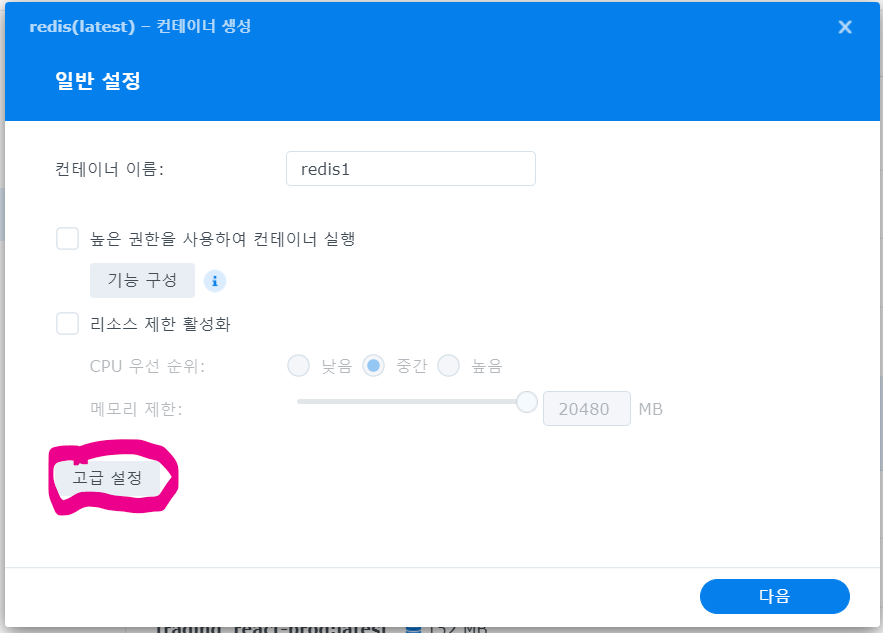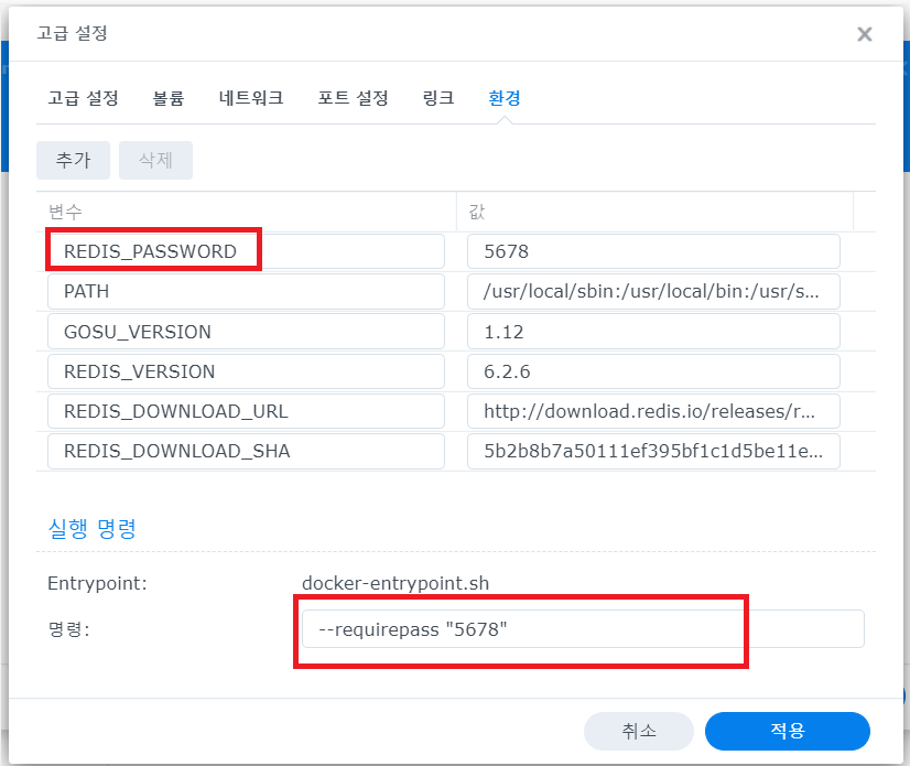 Synology NAS docker에 port, password 지정해서 Redis 올리기