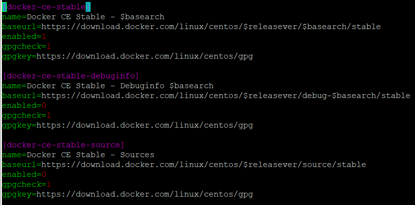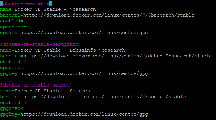 여기까지 진행하시면, /etc/yum.repos.d/docker-ce.repo 파일이 생성되어 있을 겁니다.